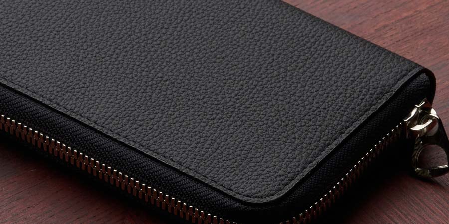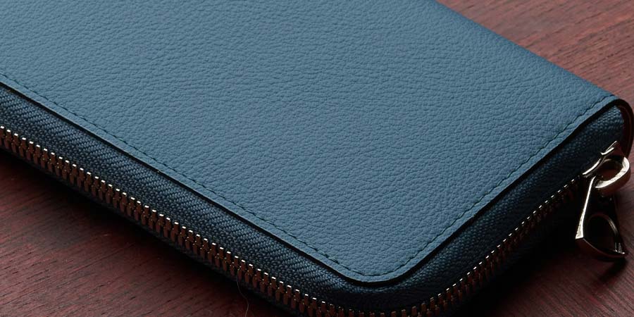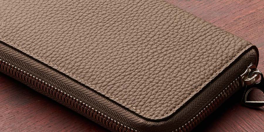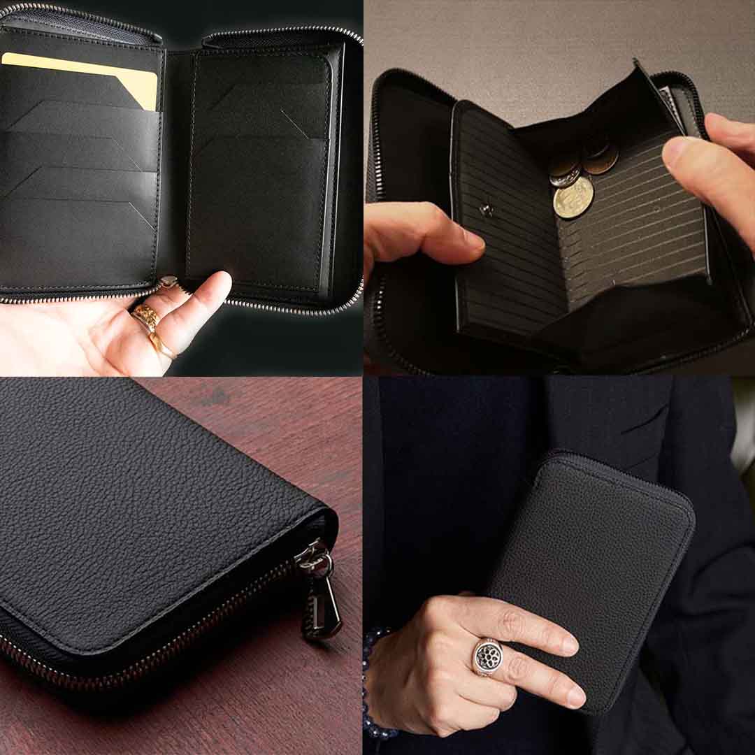 美しい内装で通帳やパスポートも入る大容量ながら長財布よりコンパクトな機能美を兼ね備えている