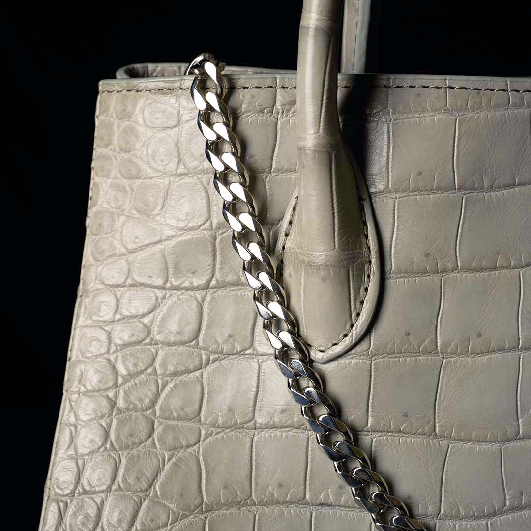 ハイブランドだけに見られる柔らかく美しい最上級クロコダイルを採用し、柄が一番キレイに見えるセンター取り