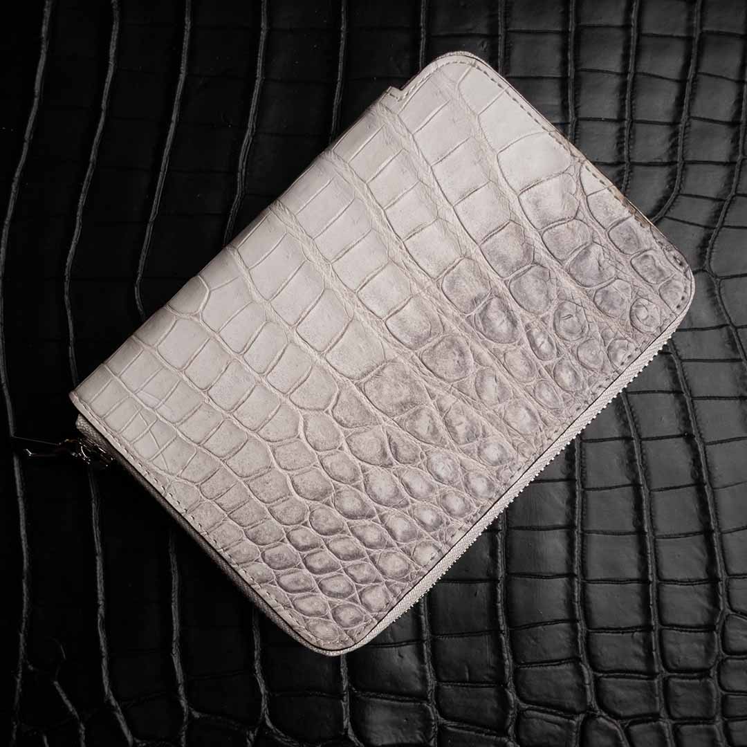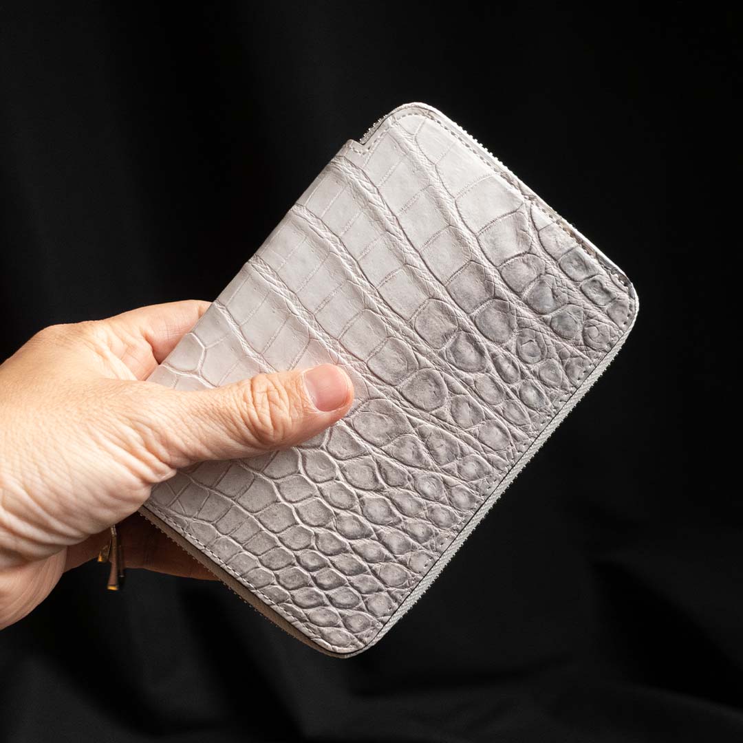 白からグレーへのグラデーションは最上グレードのマットクロコを天然の染料だけで仕上げた