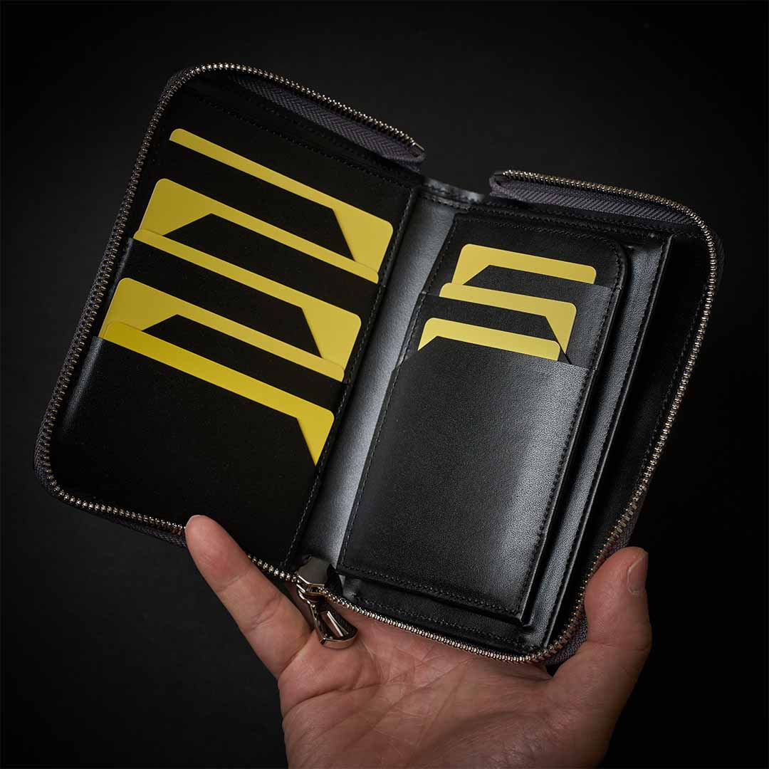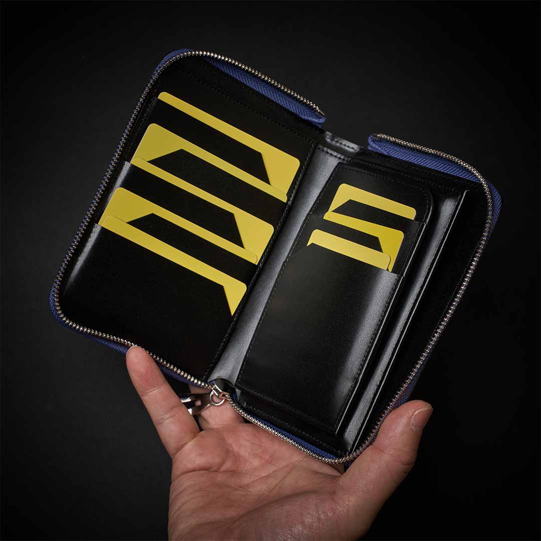 デニムの後ろポケットに入るコンパクト財布ながら、いざという時は通帳やパスポートも入れられる万能サイズ
