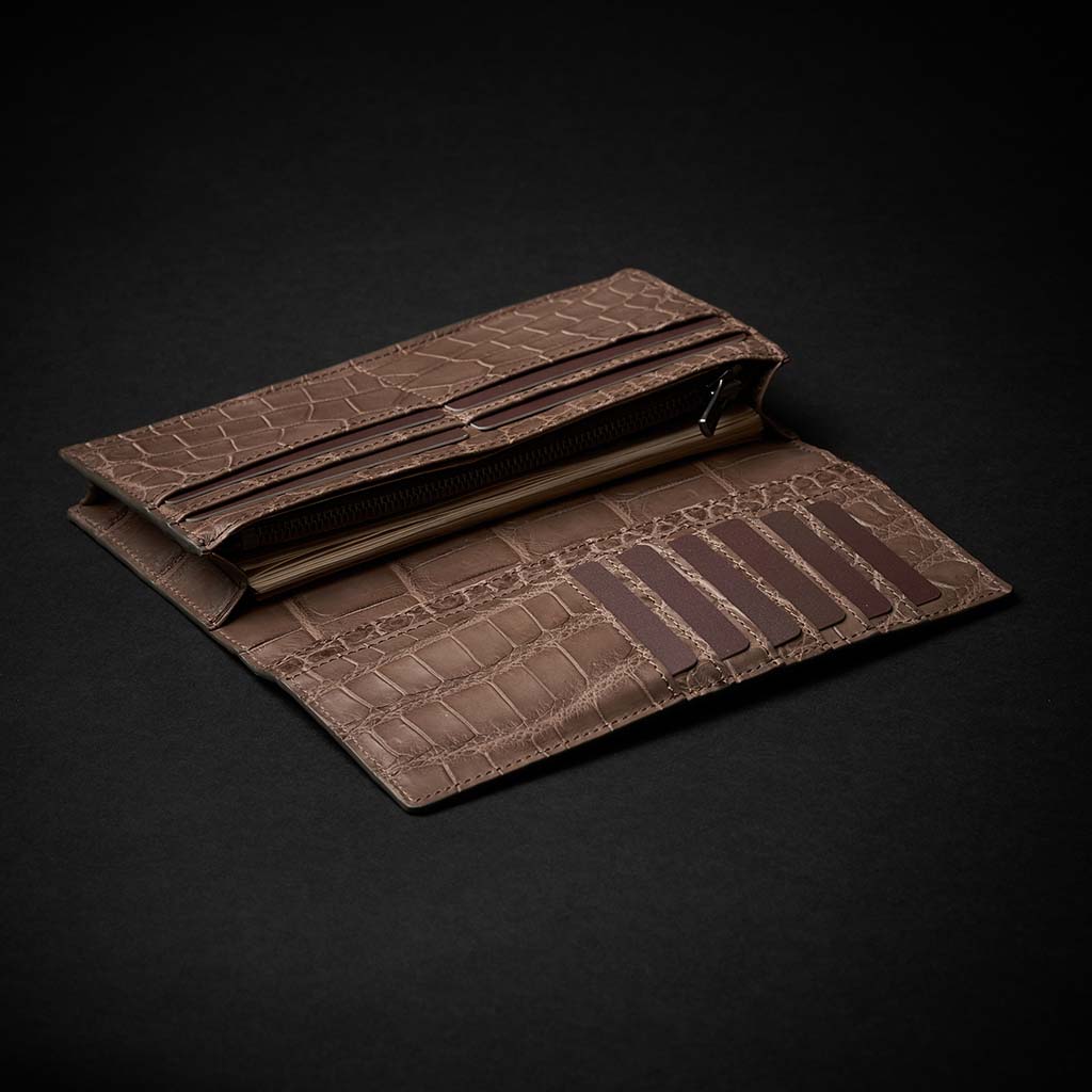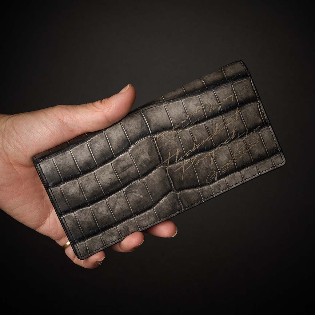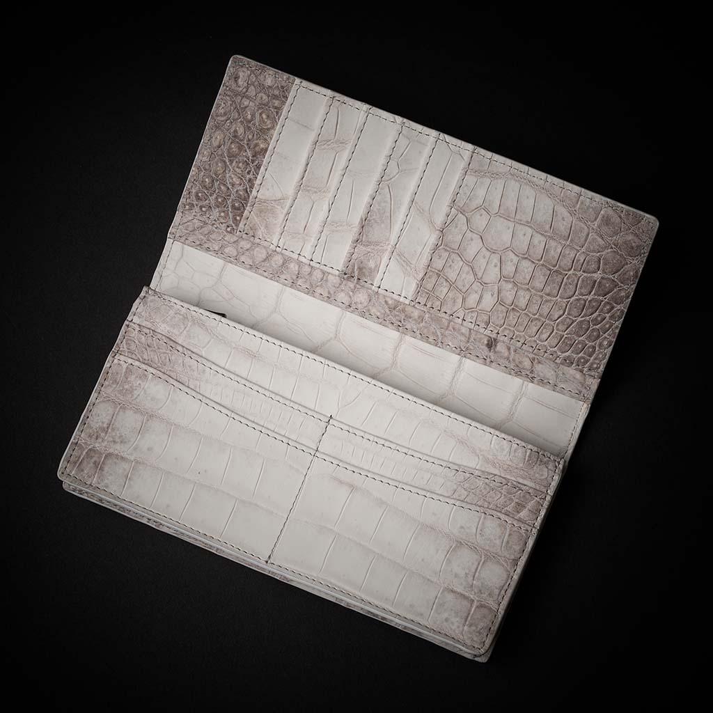 100万円の帯封がスムーズに入る大容量ながら無駄のないコンパクトな長財布を最上級のクロコで両面仕上げた特別なお財布が完成しました。