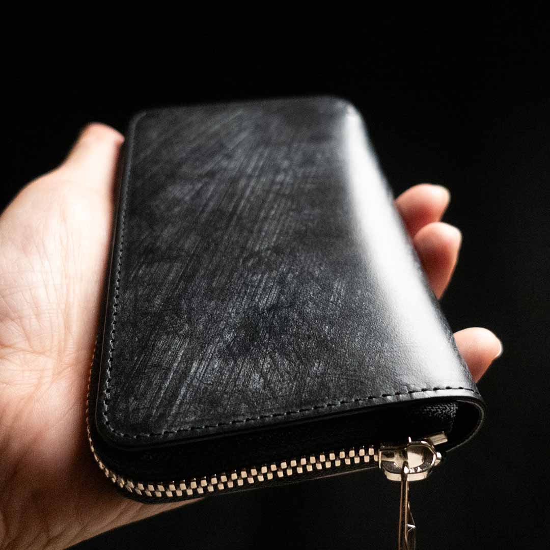「その革がもつ美しさを最大限に」もっとも美しく見える角度、位置を厳密に計算しながら無駄なく切り取っていくことで、極上素材を使いながらも非常に高いコストパフォーマンスを実現しました。